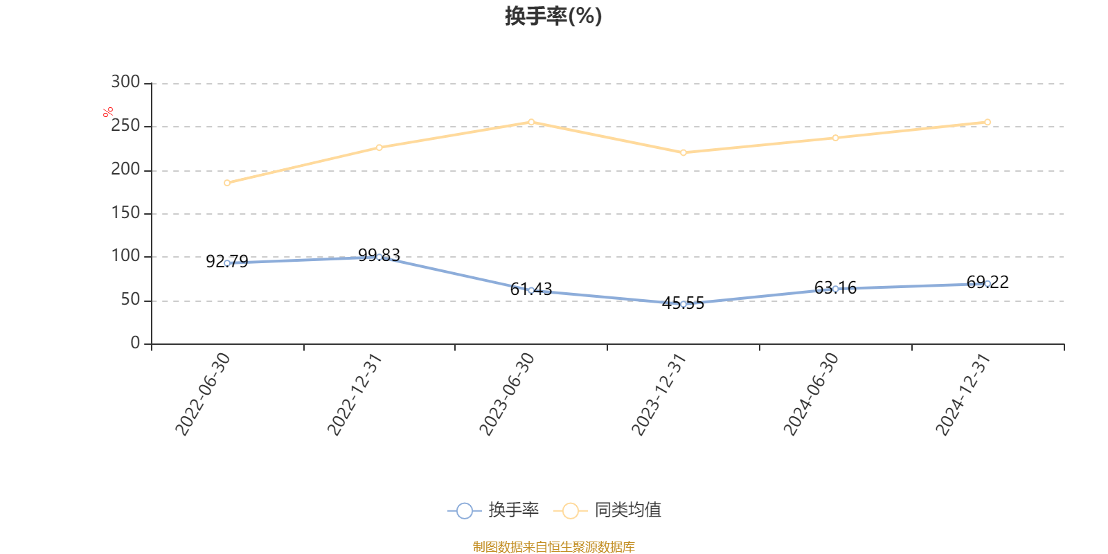 截至2025年12月31日,基金最近一年换手率约274.25%,持续低于同类均值。
