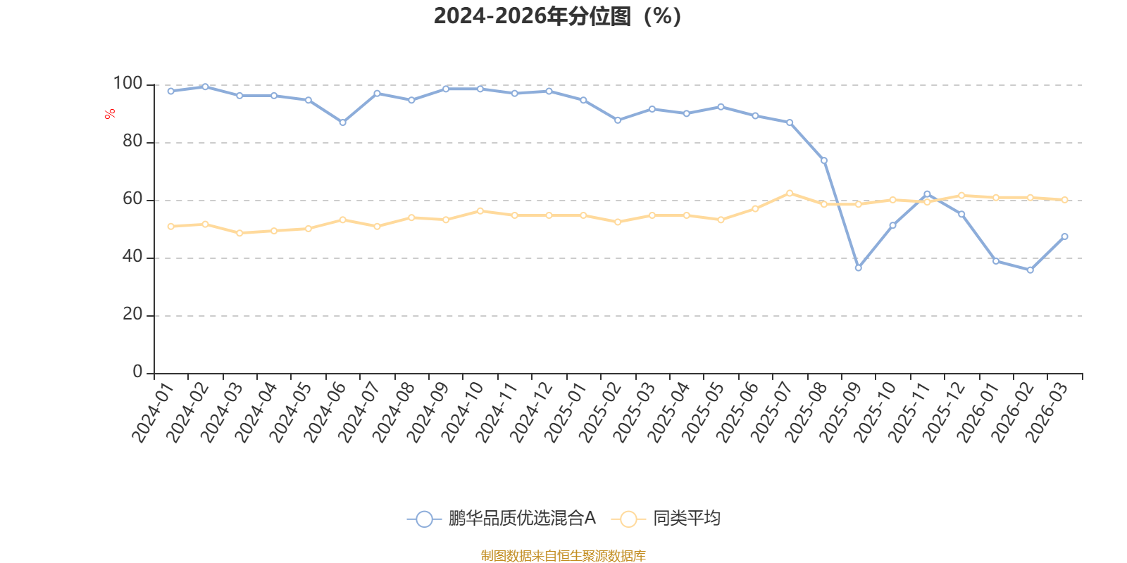 通过所选区间该基金净值增长率分位图,可以观察该基金与同类基金业绩比较情况。图为坐标原点到区间内某时点的净值增长率在同类基金中的分位数。