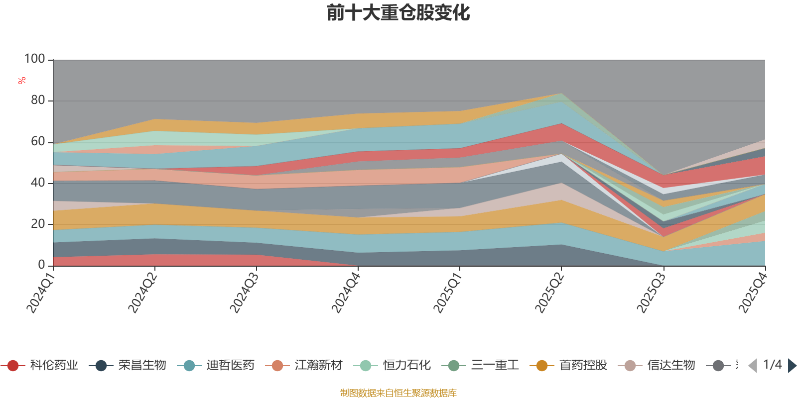 截至2025年末,基金十大重仓股分别是迪哲医药、海创药业、首药控股、恒力石化、隆基绿能、我武生物、三一重工、中国中免、江瀚新材、时代天使。