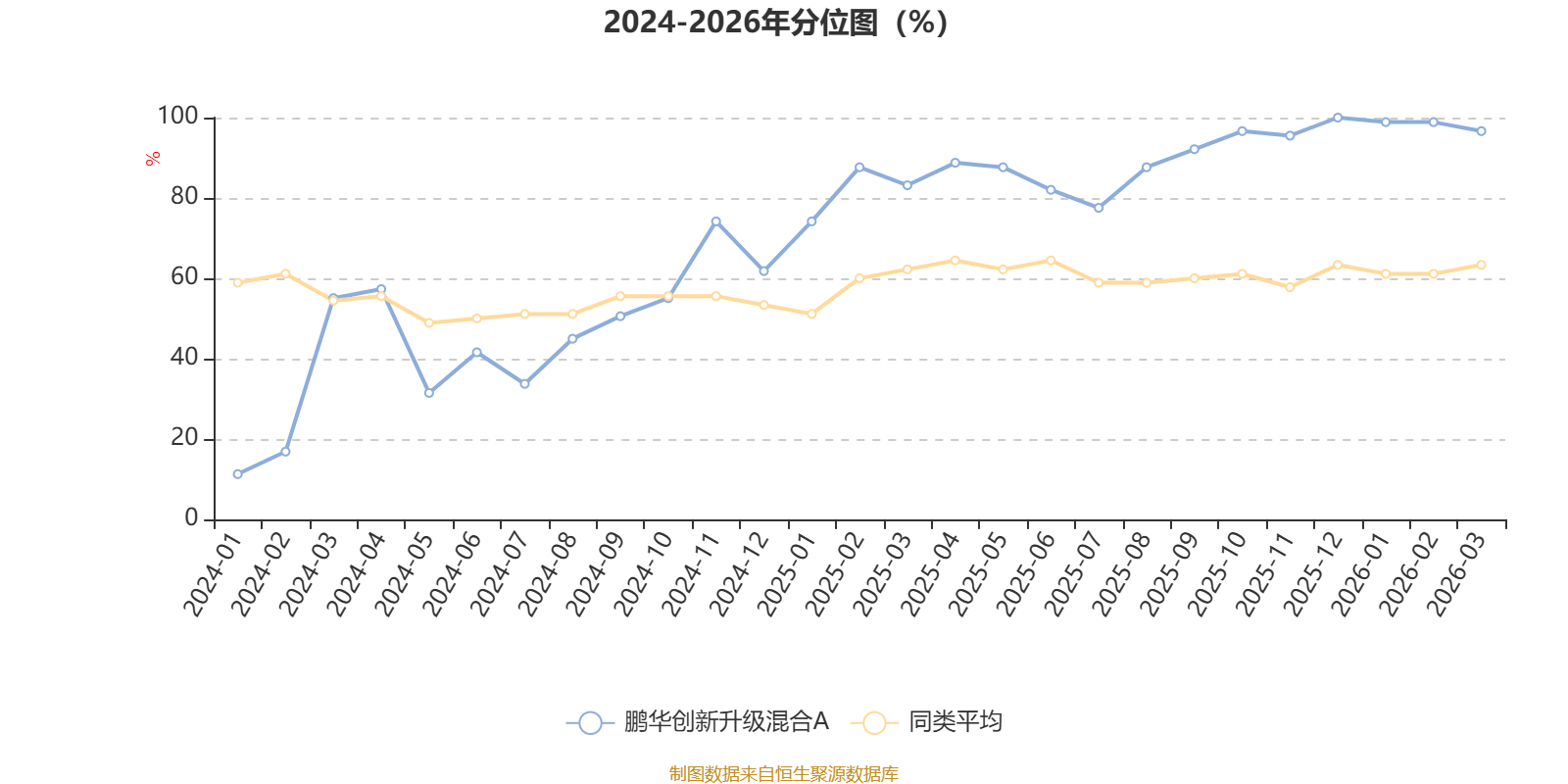 通过所选区间该基金净值增长率分位图,可以观察该基金与同类基金业绩比较情况。图为坐标原点到区间内某时点的净值增长率在同类基金中的分位数。