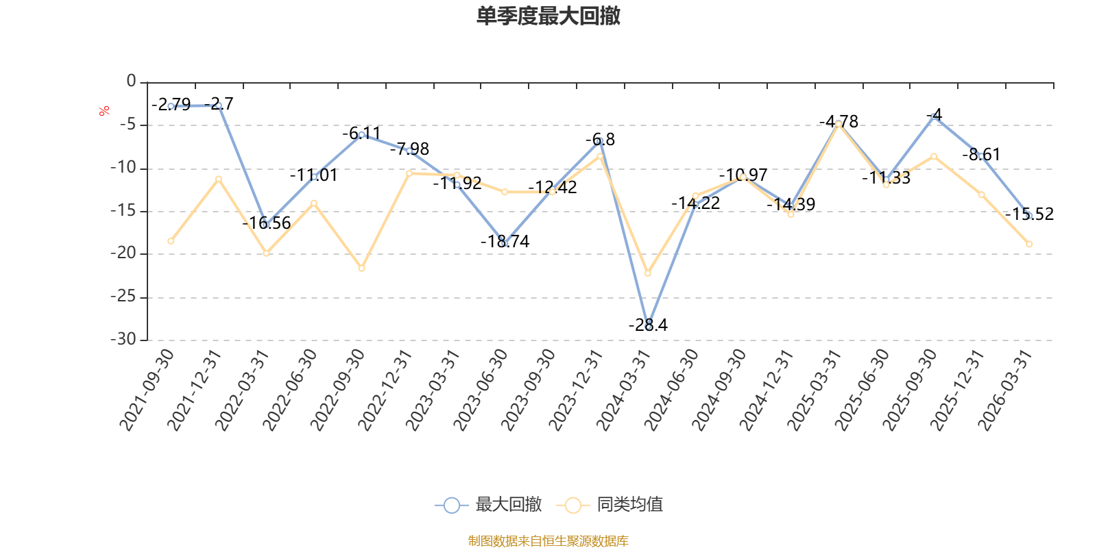 截至4月8日,基金近三年最大回撤为33.09%,同类可比基金排名16/76。单季度最大回撤出现在2024年一季度,为28.4%。