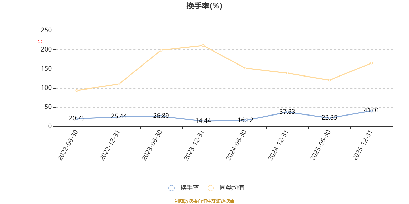 截至2025年12月31日,基金最近一年换手率约59.34%,持续低于同类均值。