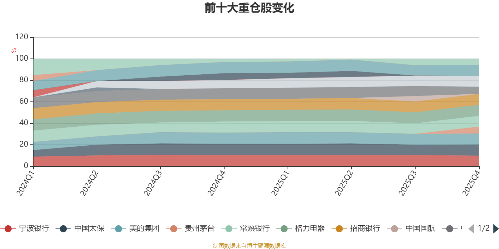 该基金持股集中度较高,且持股标的较为稳定,近2年前十大重仓股集中度长期超过60%。截至2025年末,基金十大重仓股分别是美的集团、中国平安、中国太保、招商银行、格力电器、海尔智家、常熟银行、宁波银行、中国财险、贵州茅台。