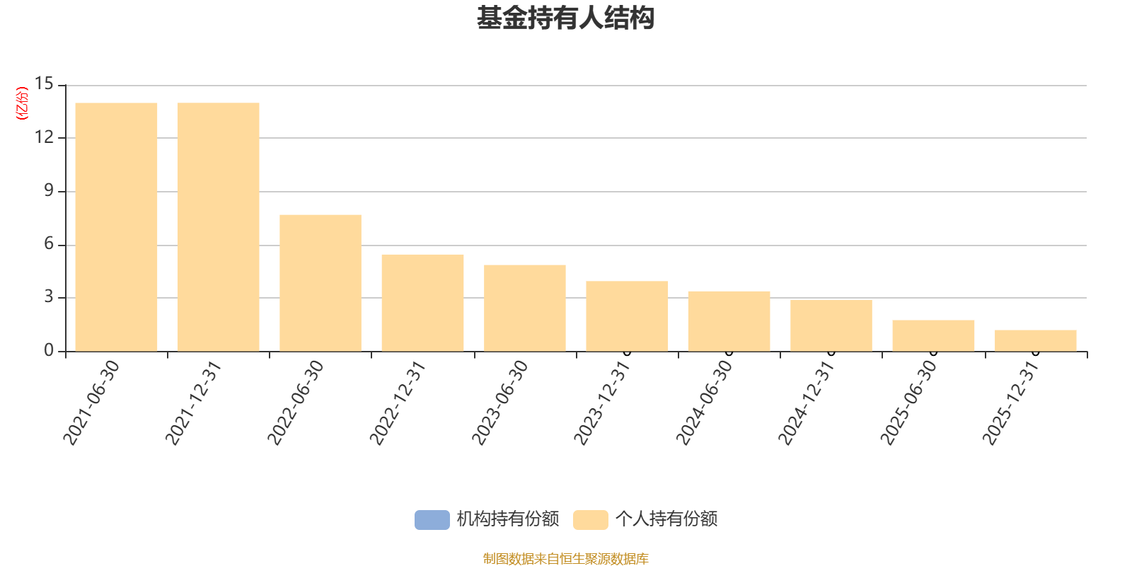 截至2025年12月31日,基金持有人共计1836户,合计持有1.19亿份。机构持有份额占比0.00%,个人投资者占比100.00%。