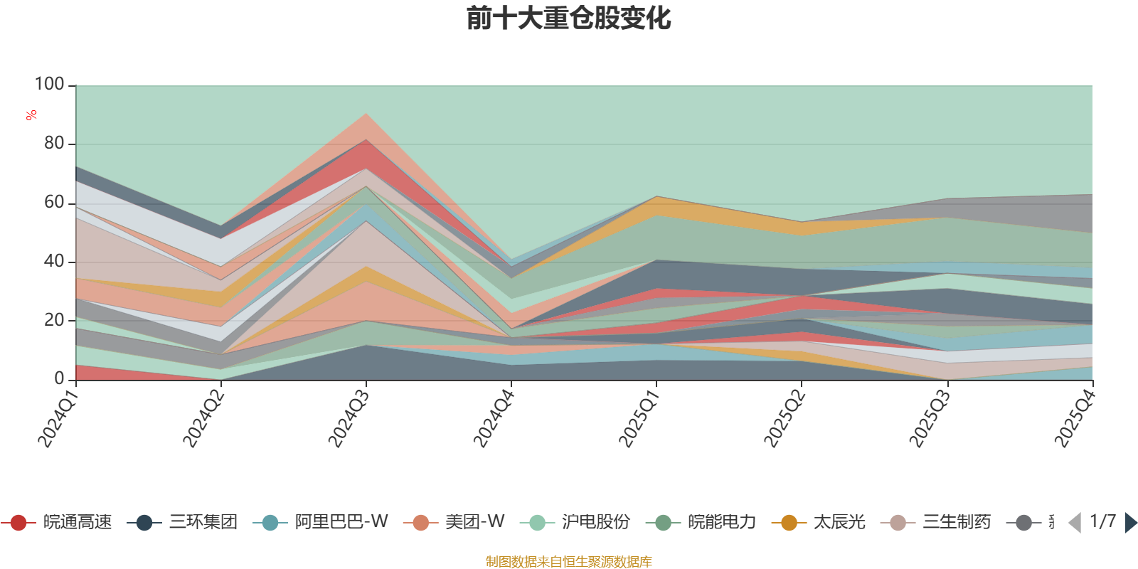 截至2025年末,基金十大重仓股分别是中际旭创、泡泡玛特、科泰电源、菲利华、东材科技、尚太科技、阿里巴巴-W、万国黄金集团、迈威生物、三生制药。