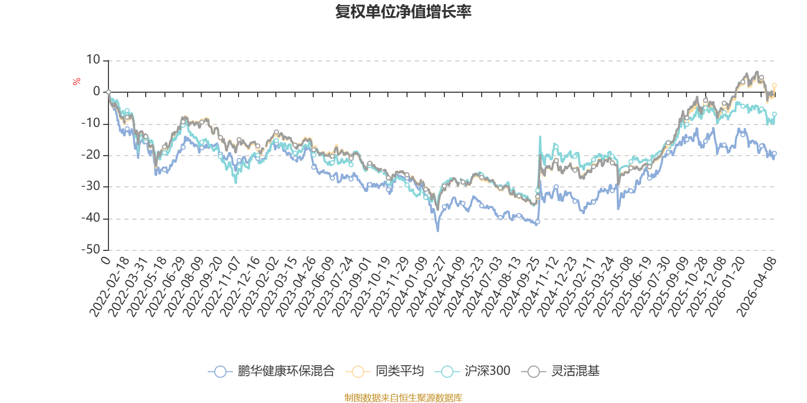 截至4月8日,鹏华健康环保混合近三个月复权单位净值增长率为-6.86%,位于同类可比基金1152/1287;近半年复权单位净值增长率为-8.95%,位于同类可比基金1174/1286;近一年复权单位净值增长率为26.75%,位于同类可比基金788/1286;近三年复权单位净值增长率为-2.88%,位于同类可比基金1016/1286。