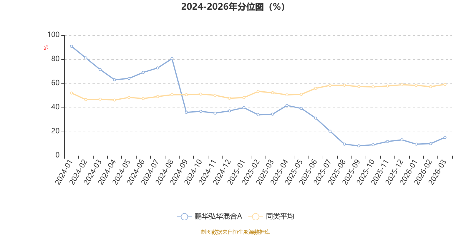 通过所选区间该基金净值增长率分位图,可以观察该基金与同类基金业绩比较情况。图为坐标原点到区间内某时点的净值增长率在同类基金中的分位数。