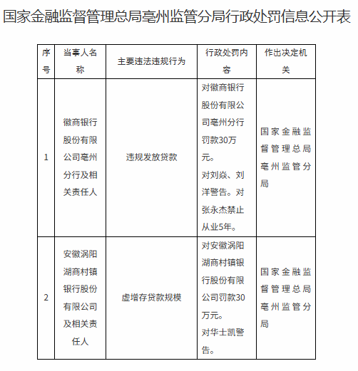 徽商银行被罚30万元