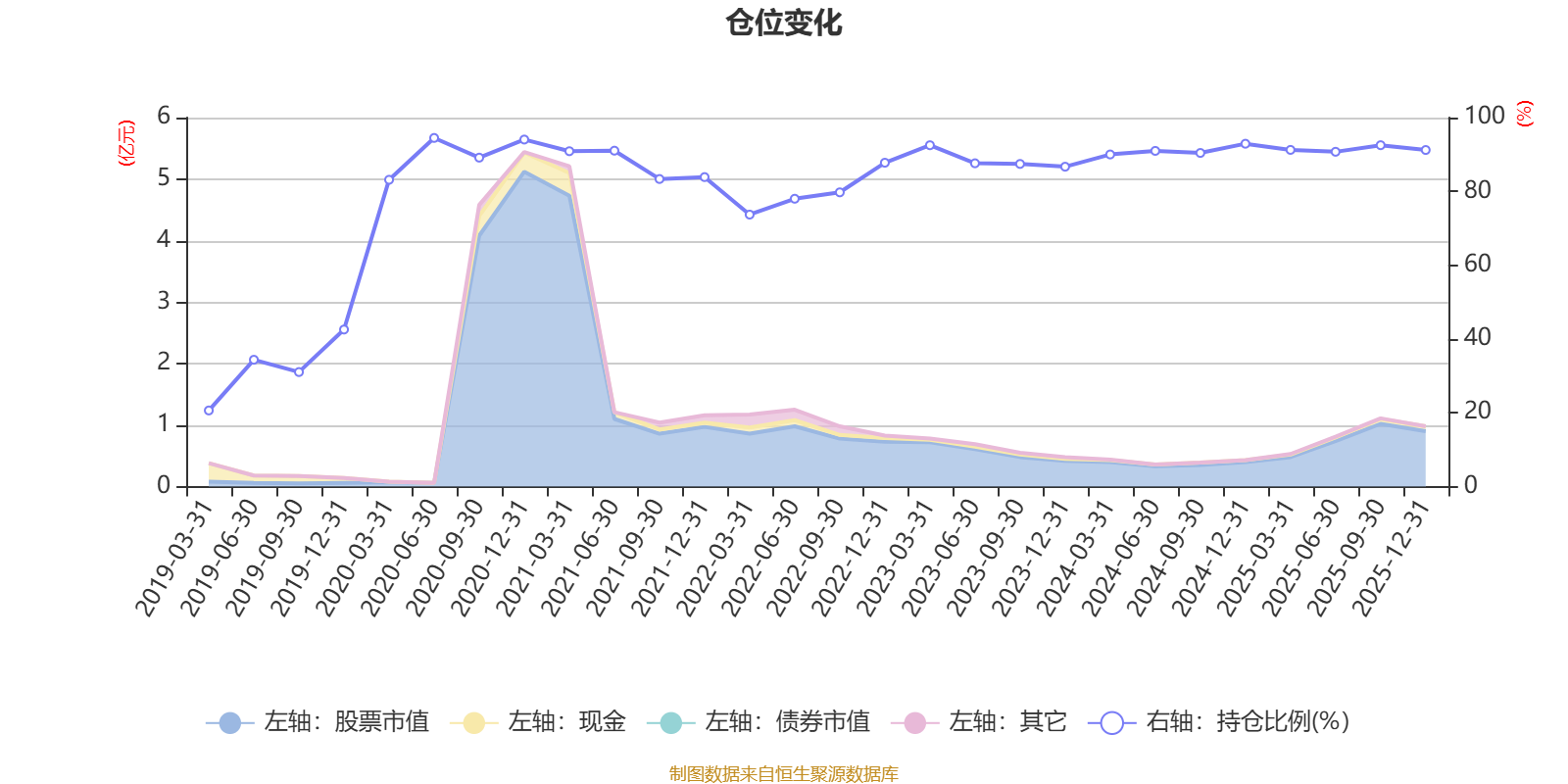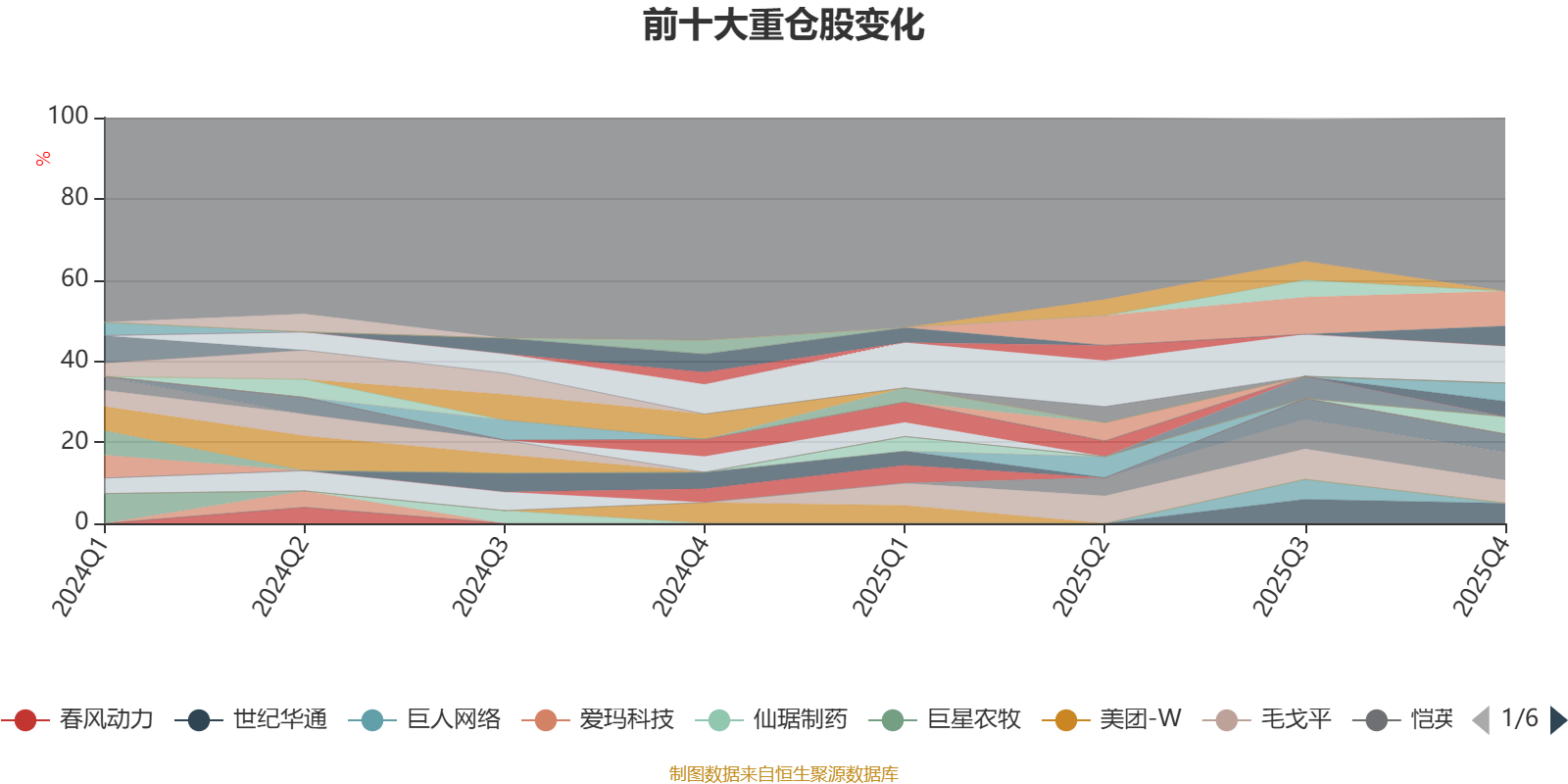 截至2025年末,基金十大重仓股分别是泡泡玛特、潮宏基、恺英网络、毛戈平、世纪华通、百亚股份、腾讯控股、绿联科技、中宠股份、李宁。