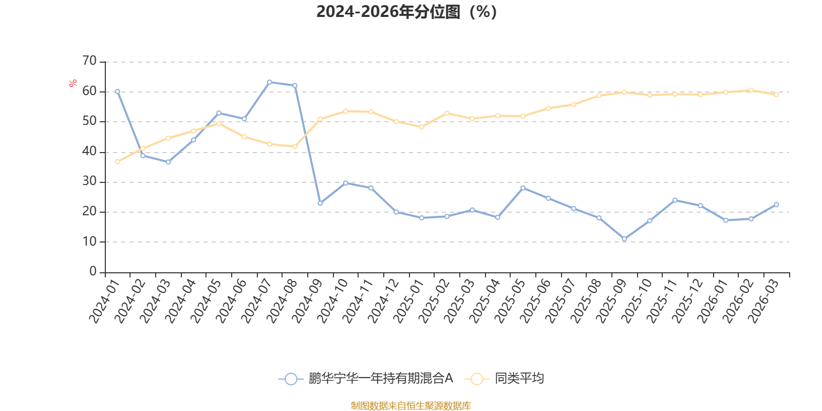 通过所选区间该基金净值增长率分位图,可以观察该基金与同类基金业绩比较情况。图为坐标原点到区间内某时点的净值增长率在同类基金中的分位数。
