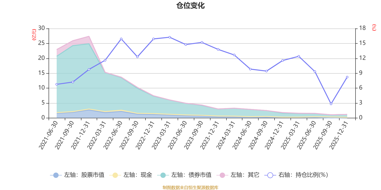 据定期报告数据统计,近三年平均股票仓位为11.36%,同类平均为19.2%。2023年一季度末基金达到16.24%的最高仓位,2025年三季度末最低,为2.82%。