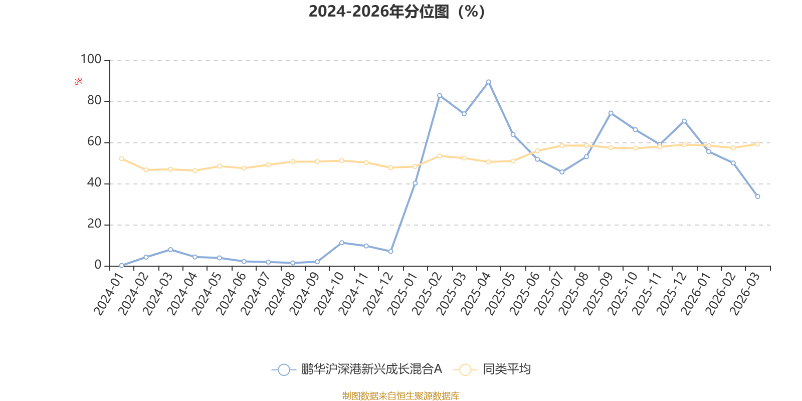 通过所选区间该基金净值增长率分位图,可以观察该基金与同类基金业绩比较情况。图为坐标原点到区间内某时点的净值增长率在同类基金中的分位数。