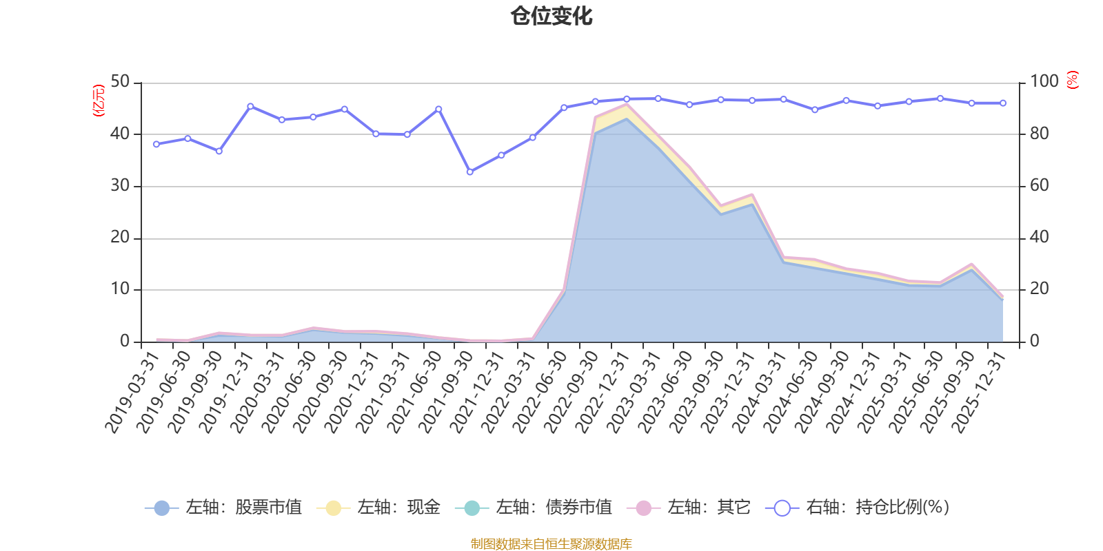 据定期报告数据统计,近三年平均股票仓位为92.51%,同类平均为72.57%。2025年上半年末基金达到93.92%的最高仓位,2021年三季度末最低,为65.58%。