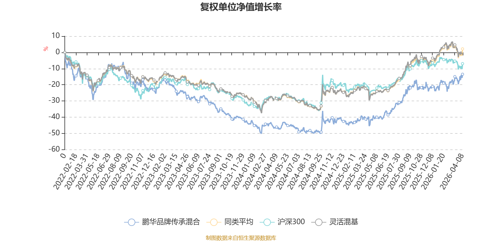 截至4月8日,鹏华品牌传承混合近三个月复权单位净值增长率为6.64%,位于同类可比基金170/1287;近半年复权单位净值增长率为4.38%,位于同类可比基金532/1286;近一年复权单位净值增长率为57.56%,位于同类可比基金313/1286;近三年复权单位净值增长率为13.41%,位于同类可比基金645/1286。
