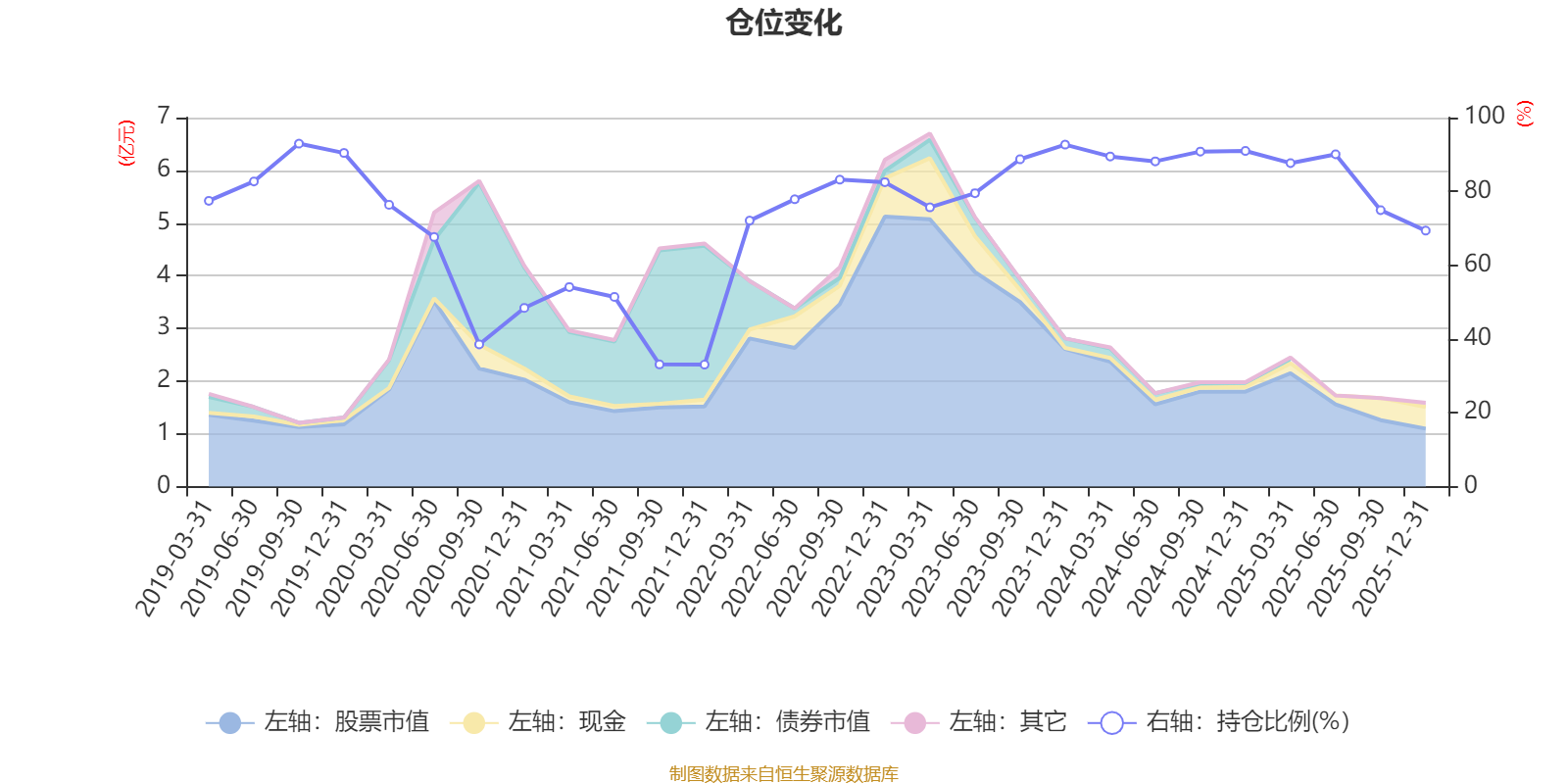据定期报告数据统计,近三年平均股票仓位为84.83%,同类平均为72.57%。2019年三季度末基金达到92.95%的最高仓位,2021年末最低,为33.06%。