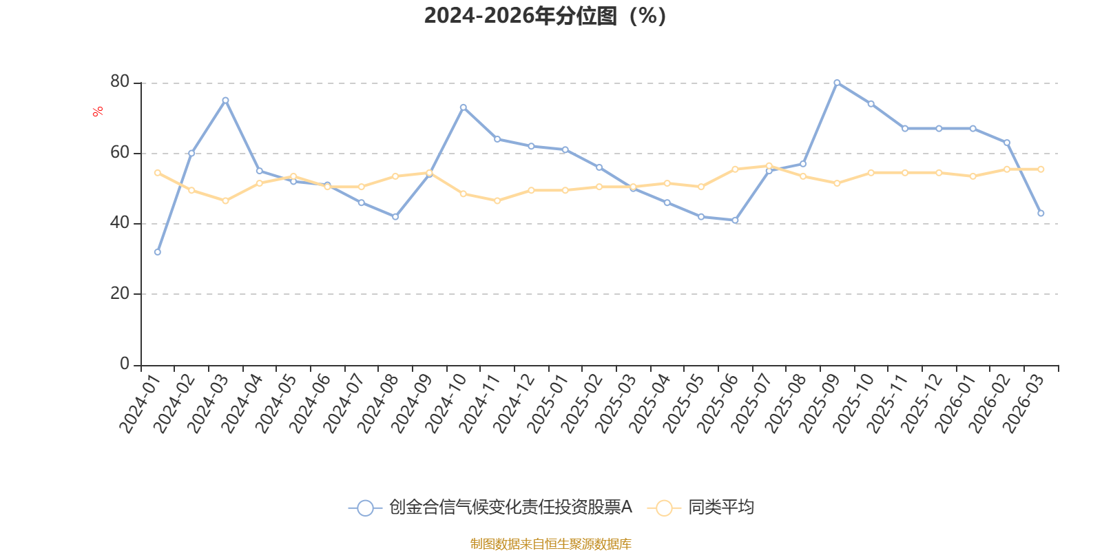 通过所选区间该基金净值增长率分位图,可以观察该基金与同类基金业绩比较情况。图为坐标原点到区间内某时点的净值增长率在同类基金中的分位数。