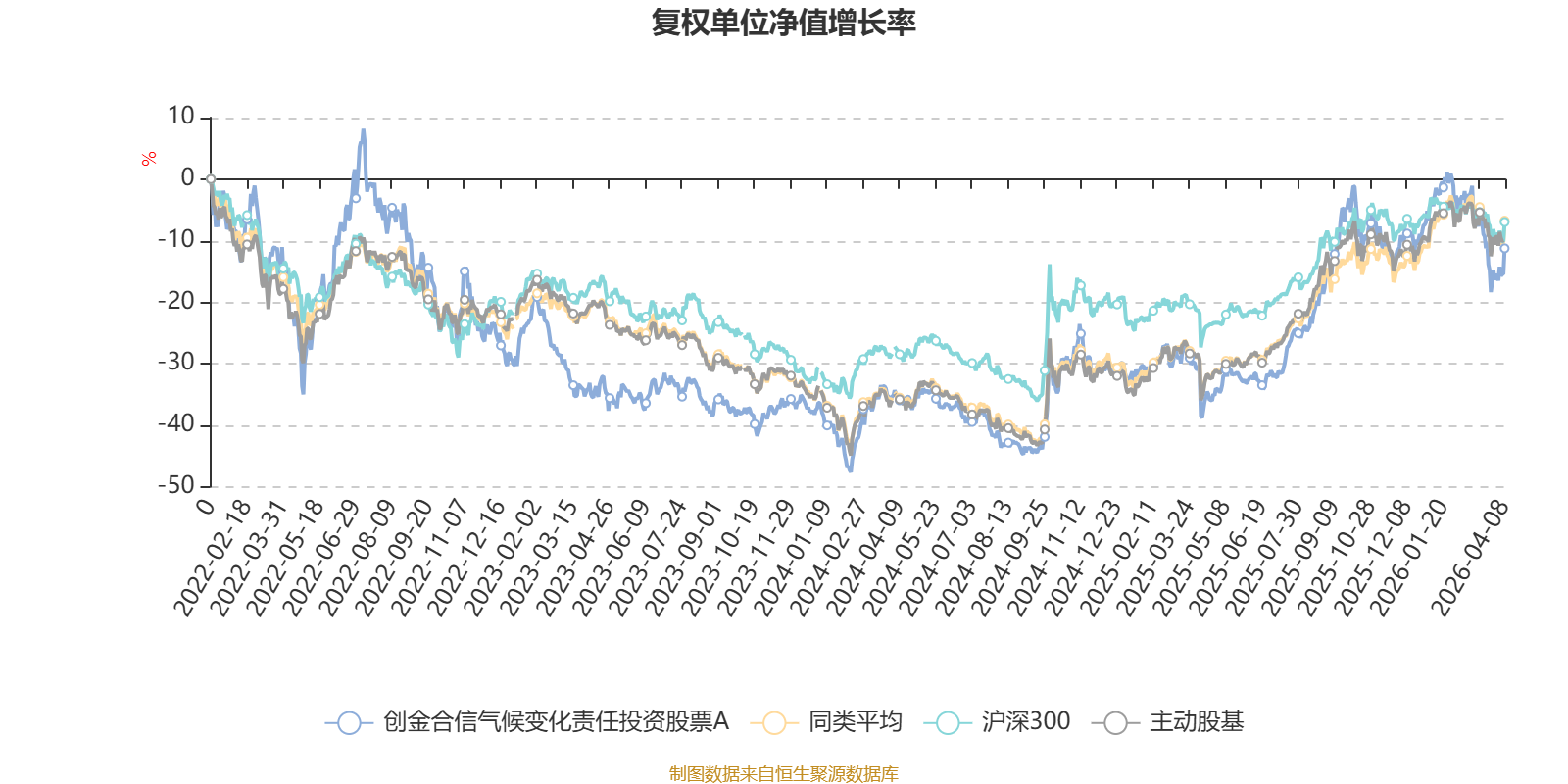 截至4月8日,创金合信气候变化责任投资股票A近三个月复权单位净值增长率为-7.21%,位于同类可比基金109/121;近半年复权单位净值增长率为-10.25%,位于同类可比基金109/121;近一年复权单位净值增长率为45.12%,位于同类可比基金55/120;近三年复权单位净值增长率为37.62%,位于同类可比基金17/90。
