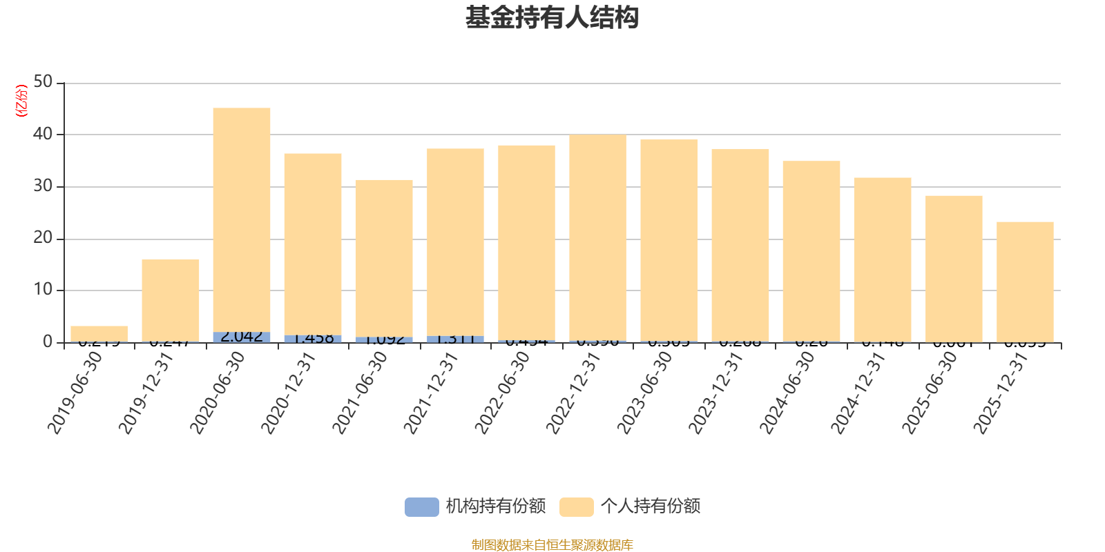 截至2025年12月31日,基金持有人共计29.43万户,合计持有23.21亿份。其中管理人员工持有98.44万份,占比0.04%,机构持有份额占比0.24%,个人投资者占比99.76%。