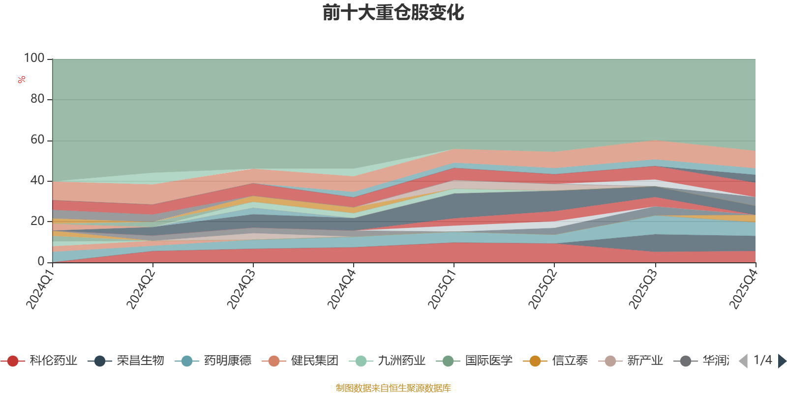 截至2025年末,基金十大重仓股分别是百利天恒、荣昌生物、恒瑞医药、药明康德、科伦药业、泽璟制药、海思科、三生国健、信立泰、惠泰医疗。