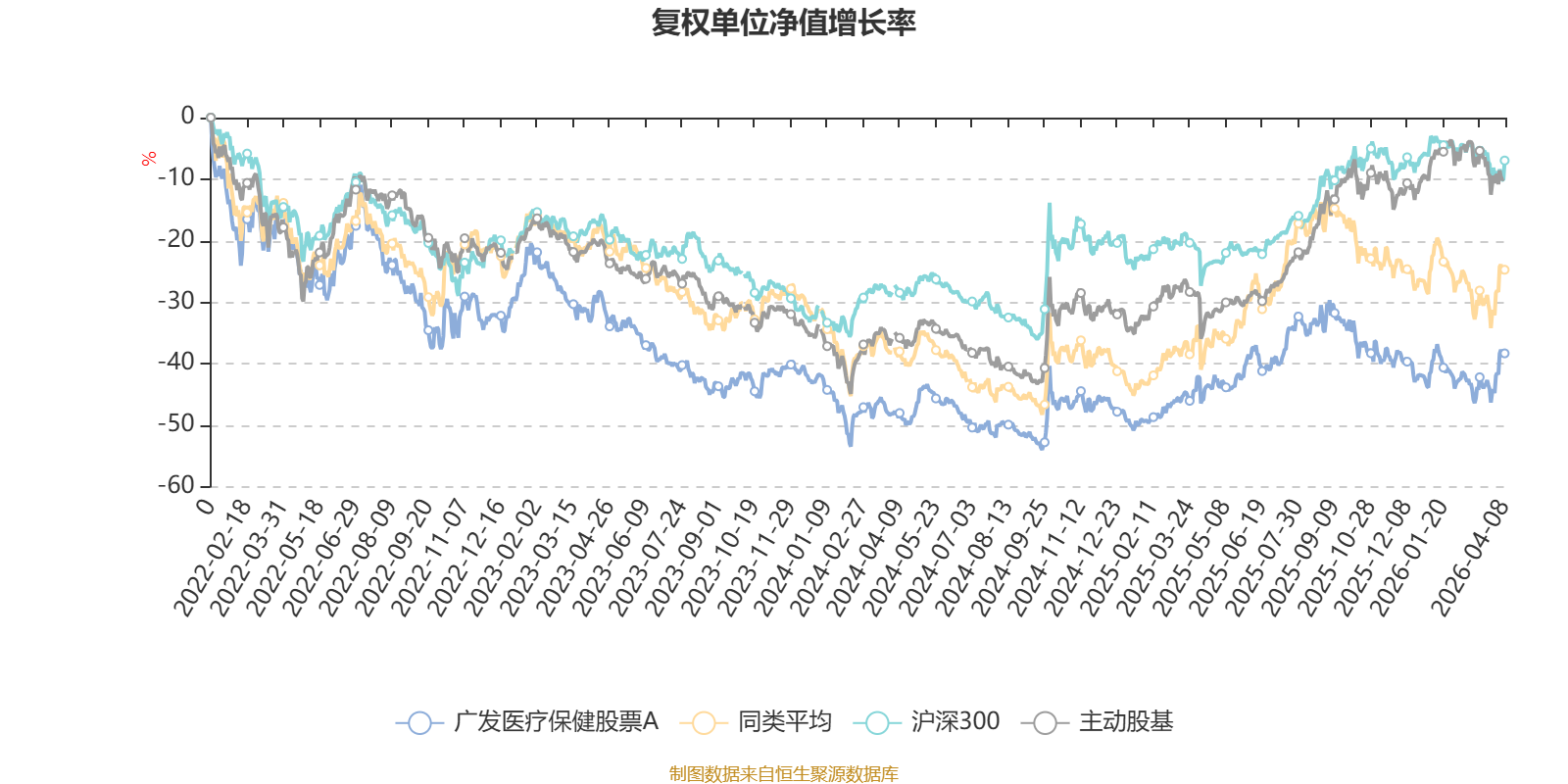 截至4月8日,广发医疗保健股票A近三个月复权单位净值增长率为1.62%,位于同类可比基金6/57;近半年复权单位净值增长率为-7.93%,位于同类可比基金16/57;近一年复权单位净值增长率为14.00%,位于同类可比基金48/57;近三年复权单位净值增长率为-12.06%,位于同类可比基金33/48。