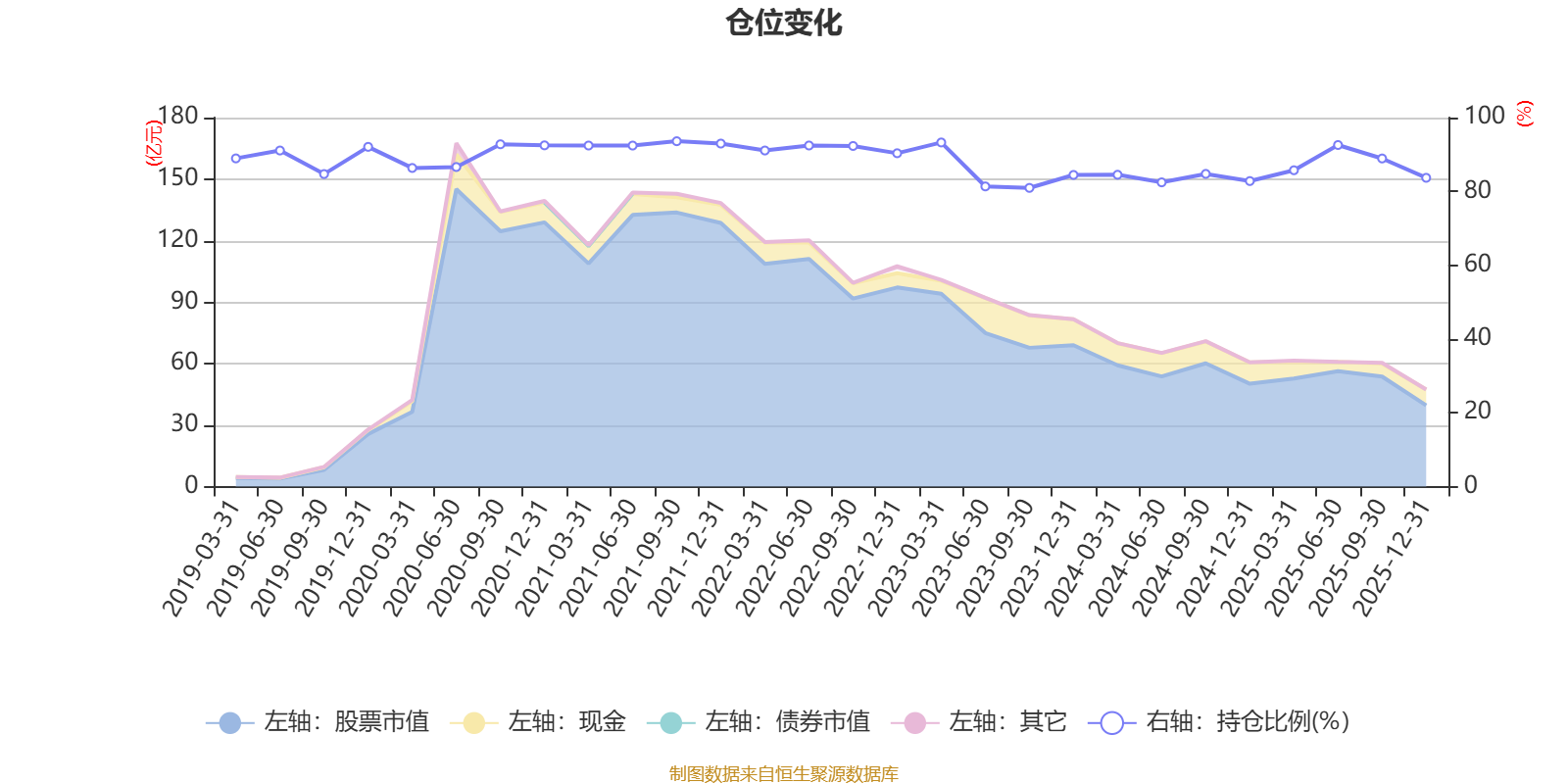 据定期报告数据统计,近三年平均股票仓位为85.45%,同类平均为88.23%。2021年三季度末基金达到93.6%的最高仓位,2023年三季度末最低,为80.95%。