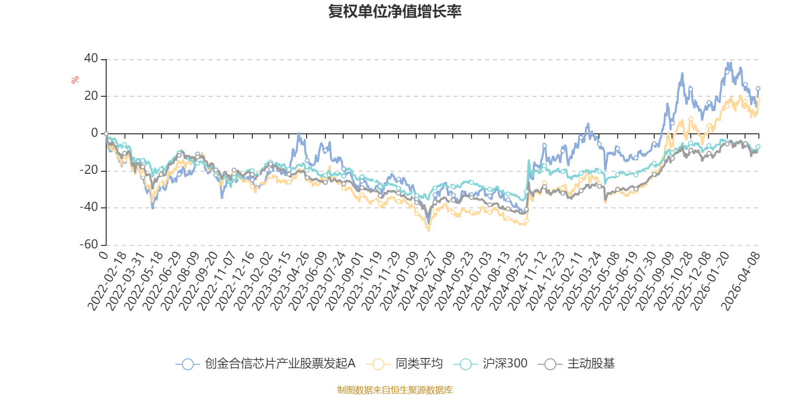 截至4月8日,创金合信芯片产业股票发起A近三个月复权单位净值增长率为-3.45%,位于同类可比基金47/63;近半年复权单位净值增长率为-5.14%,位于同类可比基金52/63;近一年复权单位净值增长率为53.82%,位于同类可比基金44/63;近三年复权单位净值增长率为23.54%,位于同类可比基金35/53。
