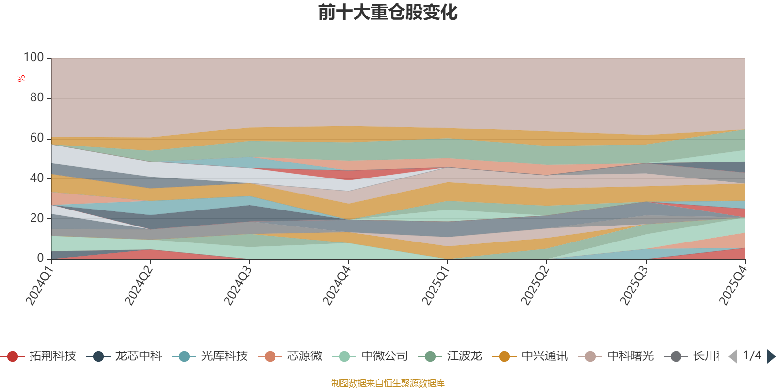 该基金持股集中度较高,近2年前十大重仓股集中度长期超过60%。截至2025年末,基金十大重仓股分别是中芯国际、海光信息、中微公司、芯源微、华虹公司、拓荆科技、盛美上海、北方华创、芯原股份、寒武纪。