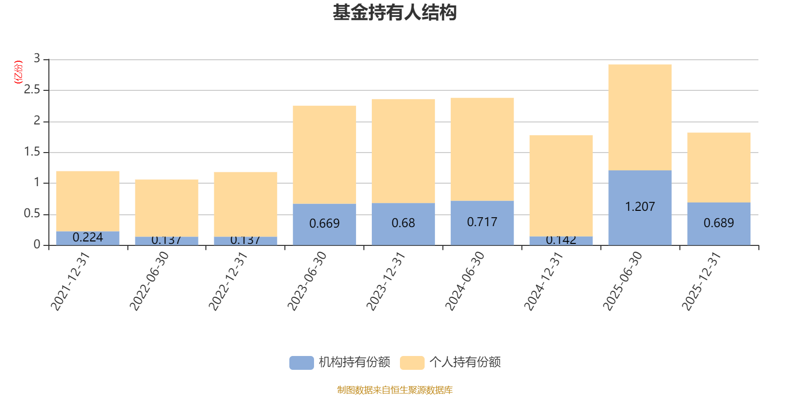 截至2025年12月31日,基金持有人共计9585户,合计持有1.82亿份。其中管理人员工持有188.35万份,占比1.04%,机构持有份额占比37.93%,个人投资者占比62.07%。