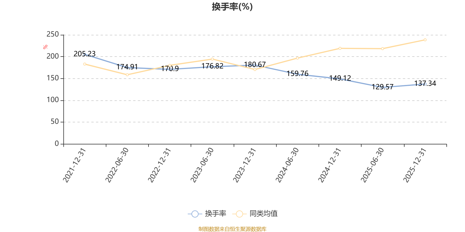 截至2025年12月31日,基金最近一年换手率约265.21%,持续2年低于同类均值。