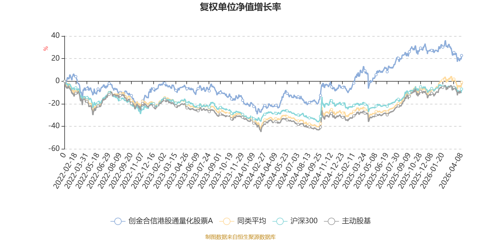截至4月8日,创金合信港股通量化股票A近三个月复权单位净值增长率为-4.53%,位于同类可比基金128/167;近半年复权单位净值增长率为-6.46%,位于同类可比基金138/167;近一年复权单位净值增长率为29.04%,位于同类可比基金122/165;近三年复权单位净值增长率为29.68%,位于同类可比基金51/157。