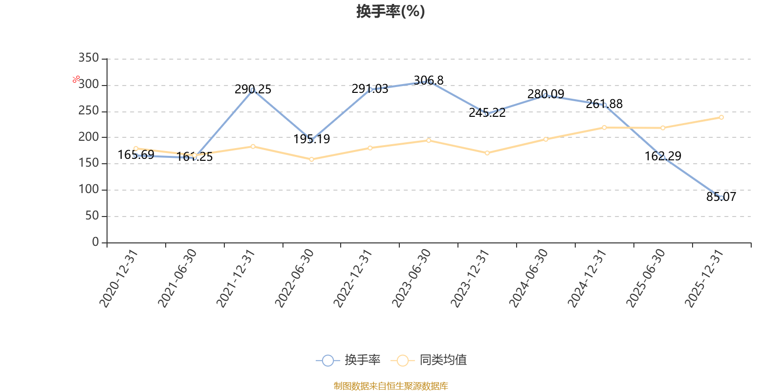 截至2025年12月31日,基金最近一年换手率约248.59%,持续1年低于同类均值。