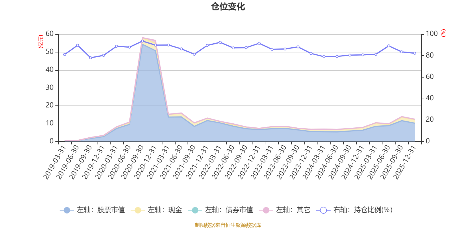 据定期报告数据统计,近三年平均股票仓位为83.18%,同类平均为88.36%。2020年三季度末基金达到93.58%的最高仓位,2019年三季度末最低,为78.04%。