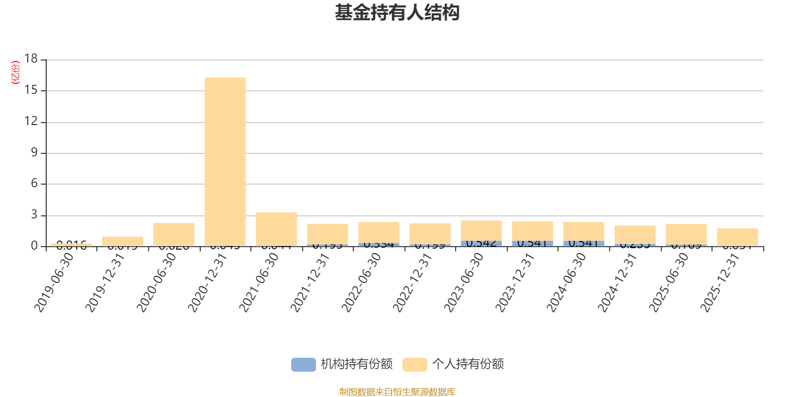 截至2025年12月31日,基金持有人共计2.75万户,合计持有1.74亿份。其中管理人员工持有13.05万份,占比0.08%,机构持有份额占比1.78%,个人投资者占比98.22%。