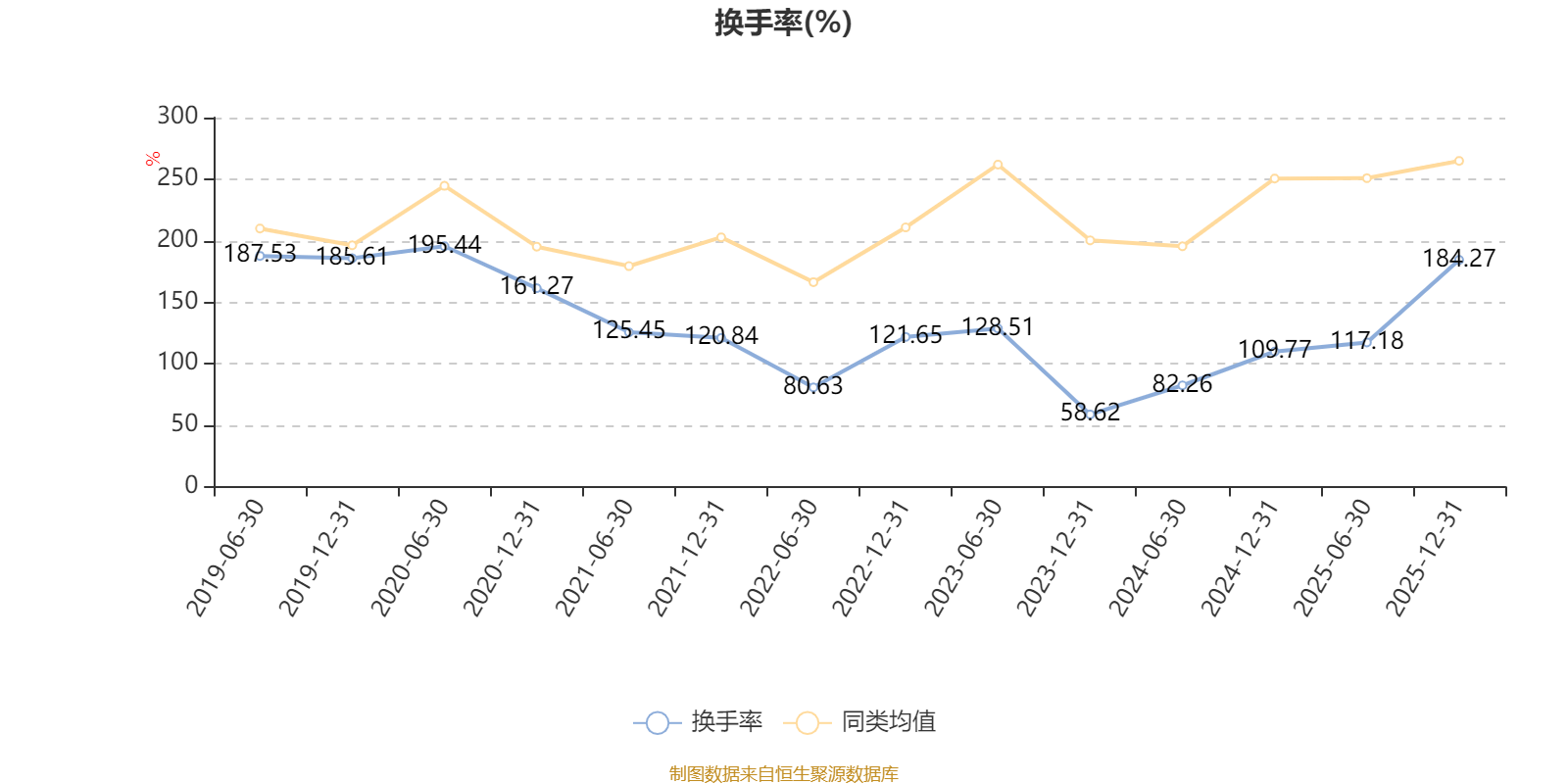 截至2025年12月31日,基金最近一年换手率约308.63%,持续低于同类均值。