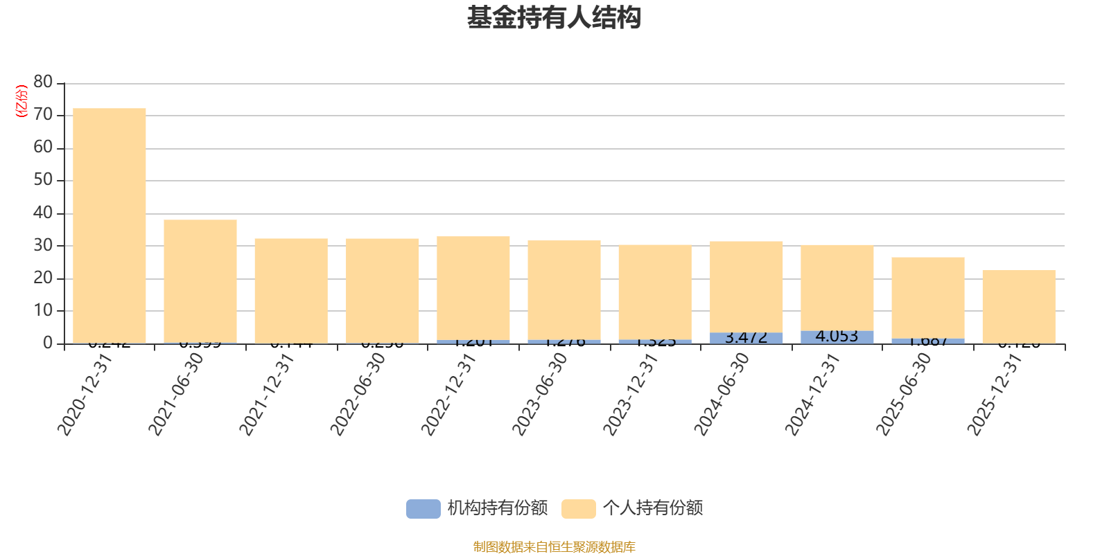 截至2025年12月31日,基金持有人共计3.81万户,合计持有22.62亿份。其中管理人员工持有6.72万份,机构持有份额占比0.56%,个人投资者占比99.44%。