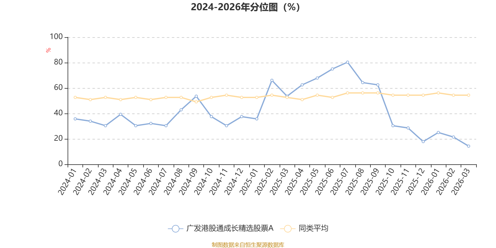 通过所选区间该基金净值增长率分位图,可以观察该基金与同类基金业绩比较情况。图为坐标原点到区间内某时点的净值增长率在同类基金中的分位数。