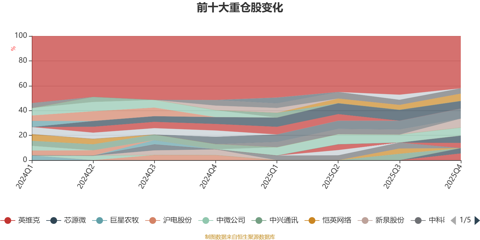 截至2025年末,基金十大重仓股分别是亨通光电、新易盛、新大陆、北方华创、生益科技、工业富联、英维克、芯源微、焦点科技、东山精密。