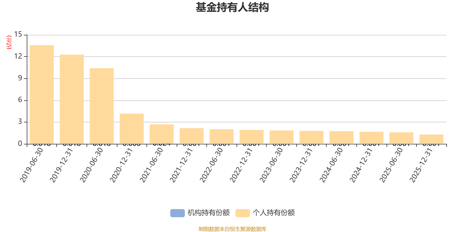 截至2025年12月31日,基金持有人共计6718户,合计持有1.3亿份。其中管理人员工持有2.02万份,占比0.02%,机构持有份额占比0.09%,个人投资者占比99.91%。