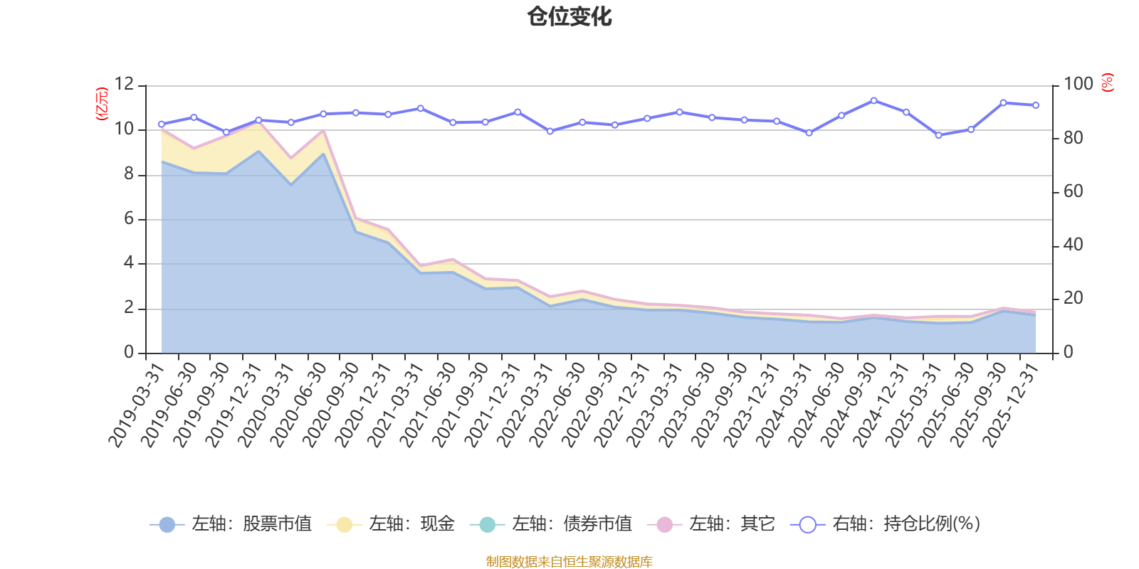 据定期报告数据统计,近三年平均股票仓位为88.17%,同类平均为88.27%。2024年三季度末基金达到94.31%的最高仓位,2025年一季度末最低,为81.38%。