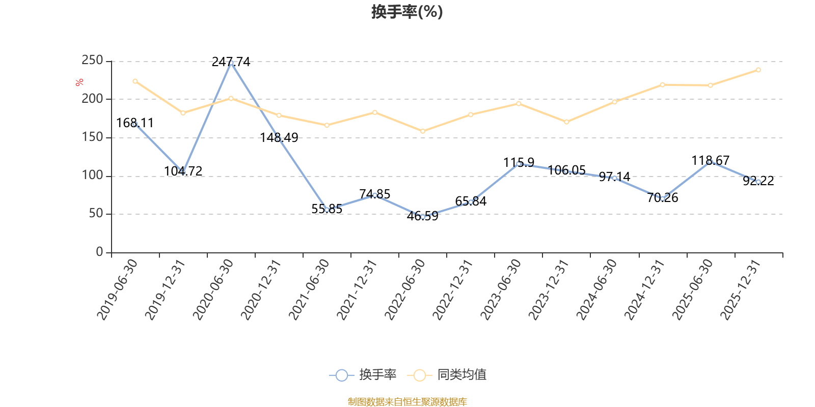 截至2025年12月31日,基金最近一年换手率约204.47%,持续5年低于同类均值。