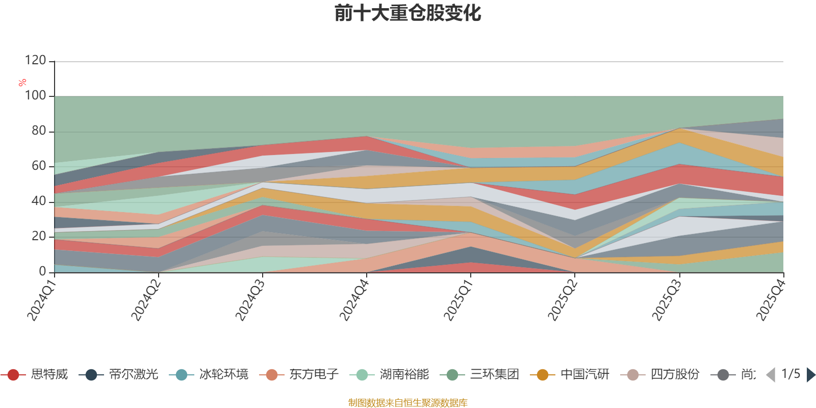 该基金持股集中度较高,近2年前十大重仓股集中度长期超过60%。截至2025年末,基金十大重仓股分别是三环集团、国网信通、宁德时代、星源材质、长江电力、国投电力、零跑汽车、中国汽研、快手-W、福莱特玻璃。