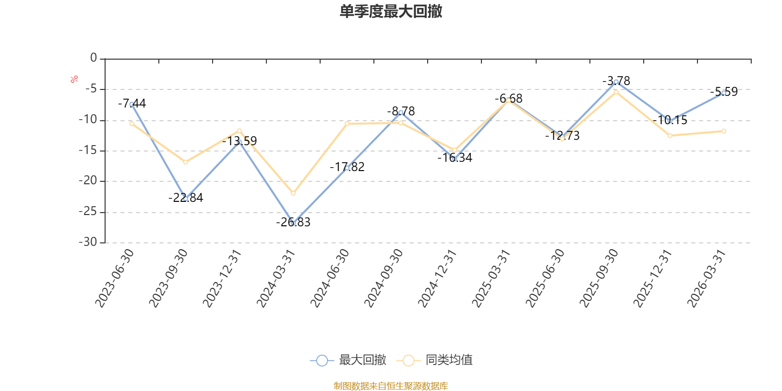 截至3月16日,基金近三年最大回撤为46.72%,同类可比基金排名27/33。单季度最大回撤出现在2024年一季度,为26.83%。