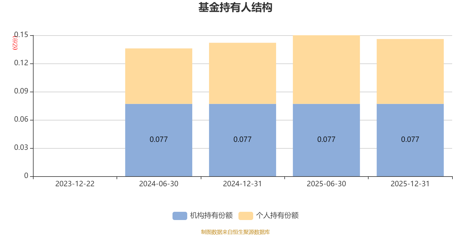 截至2025年12月31日,基金持有人共计171户,合计持有1451.9万份。其中管理人员工持有422.21万份,占比29.08%,机构持有份额占比52.70%,个人投资者占比47.30%。