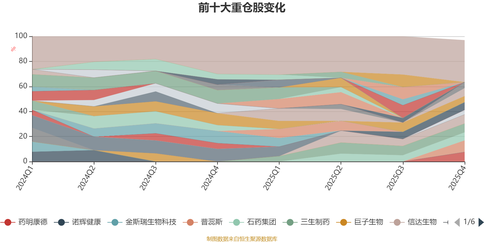 该基金持股集中度较高,近2年前十大重仓股集中度长期超过60%。截至2025年末,基金十大重仓股分别是普蕊斯、药明康德、信达生物、三生制药、石药集团、益方生物、中国生物制药、祥生医疗、泽璟制药、百济神州。
