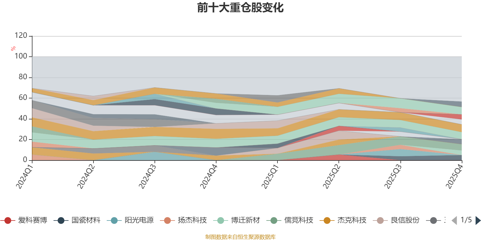 该基金持股集中度较高。截至2025年末,基金十大重仓股分别是三花智控、伟创电气、峰岹科技、儒竞科技、中际旭创、国瓷材料、金盘科技、宏发股份、宁德时代、博迁新材。