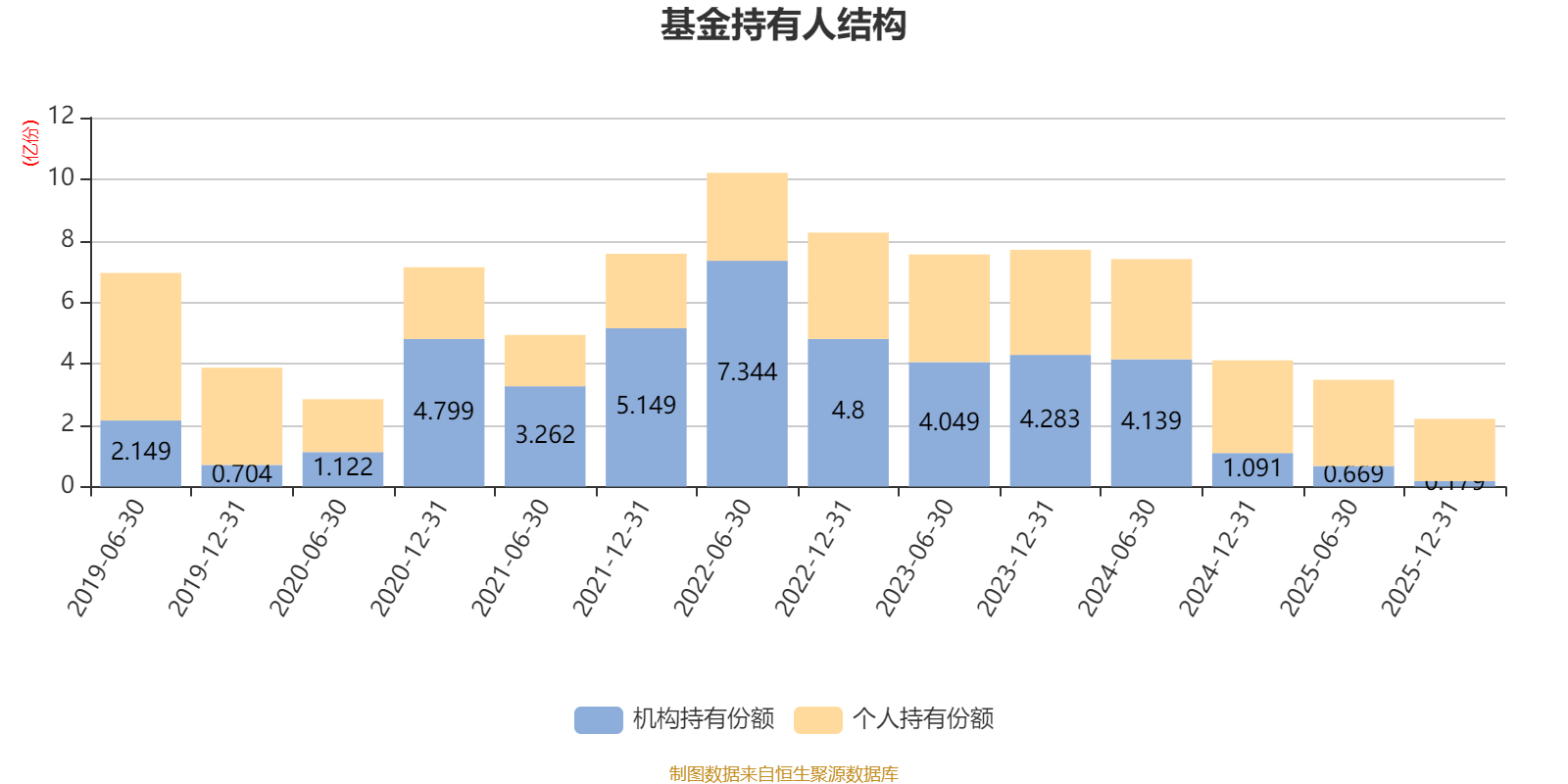 截至2025年12月31日,基金持有人共计7.25万户,合计持有2.2亿份。其中管理人员工持有195.93万份,占比0.89%,机构持有份额占比8.13%,个人投资者占比91.87%。