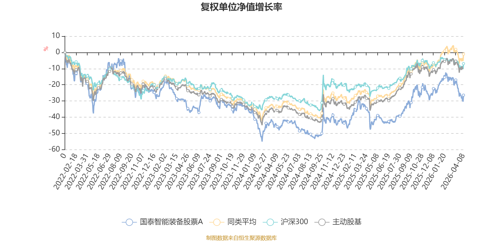 截至4月8日,国泰智能装备股票A近三个月复权单位净值增长率为-10.09%,位于同类可比基金163/167;近半年复权单位净值增长率为-7.71%,位于同类可比基金144/167;近一年复权单位净值增长率为40.58%,位于同类可比基金94/165;近三年复权单位净值增长率为3.51%,位于同类可比基金119/157。