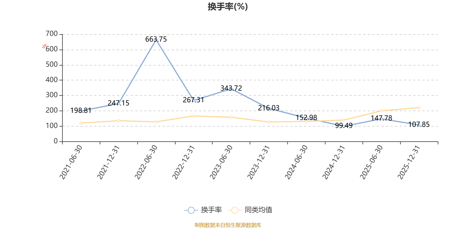 截至2025年12月31日,基金最近一年换手率约249.35%,持续1年低于同类均值。