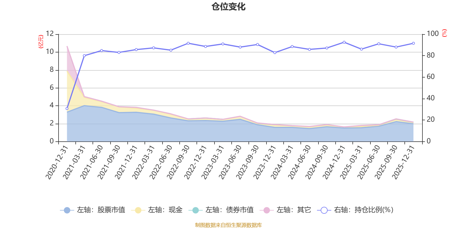 据定期报告数据统计,近三年平均股票仓位为88.57%,同类平均为88.23%。2024年末基金达到92.53%的最高仓位,2020年末最低,为30.73%。