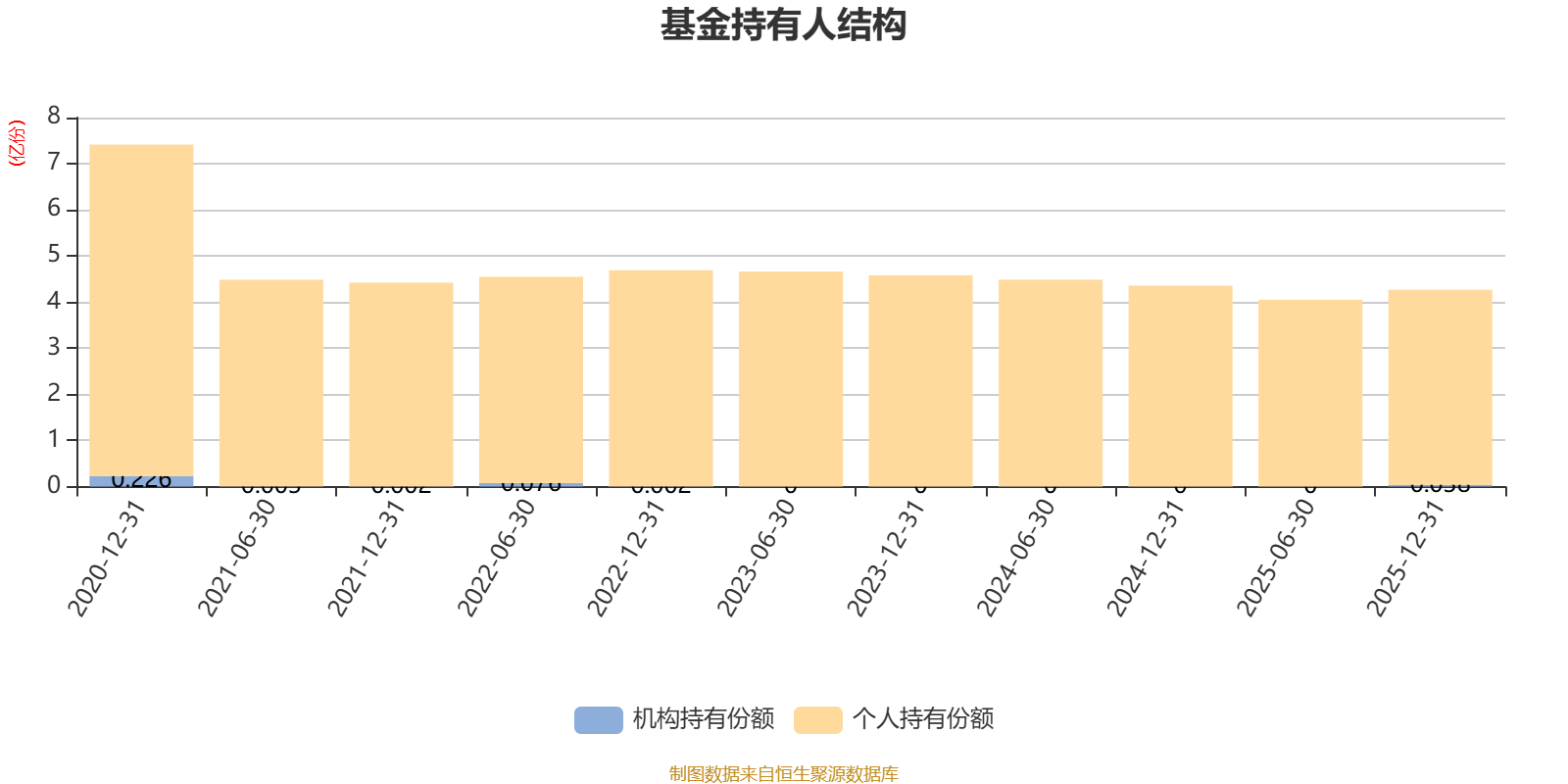 截至2025年12月31日,基金持有人共计1.18万户,合计持有4.27亿份。其中管理人员工持有74.99万份,占比0.18%,机构持有份额占比0.89%,个人投资者占比99.11%。